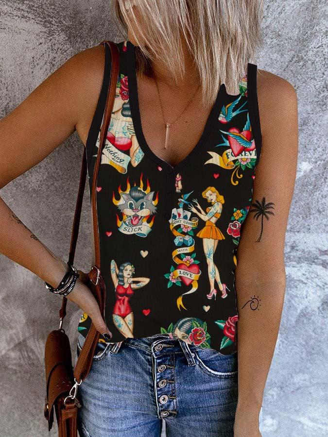 Women’s Vintage Tiger Tattoo Printed Sleeveless Tank Top