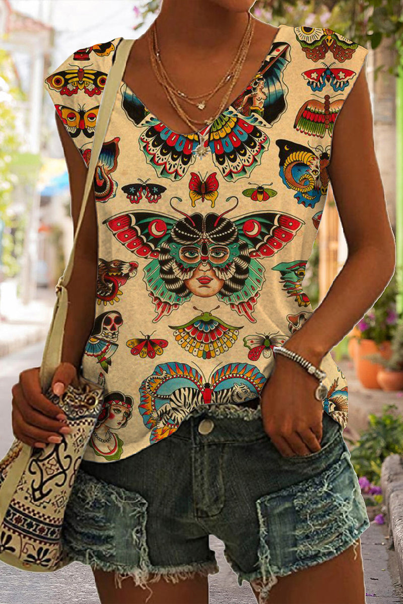 Women’s Vintage Tiger Tattoo Printed Sleeveless Tank Top